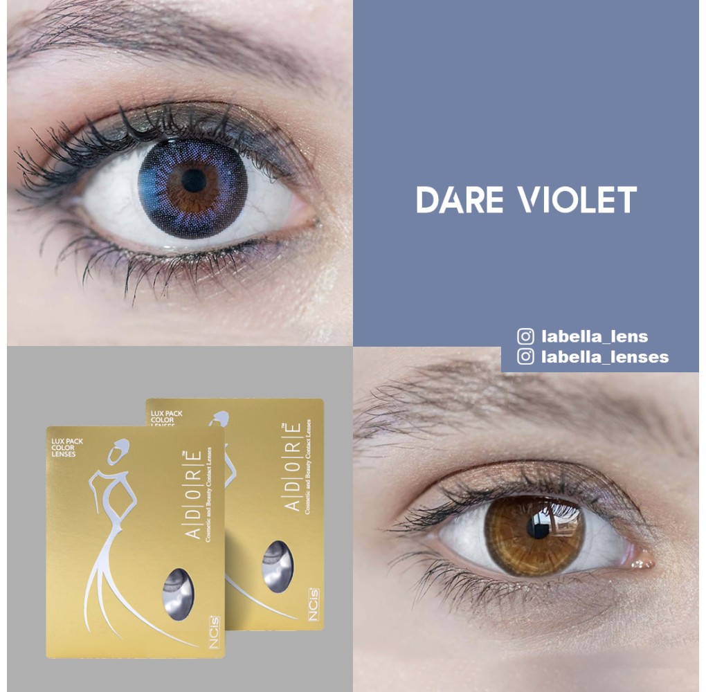 Adore Dare Tone Mavi Renk Violet  (3 Aylık) renkli lensler zarif çizgileri ile gözleriniz için doğal bir görünüm elde etmenize yardımcı olur.  Yumuşak renkli lensler grubundadır.Adore Dare Tone Mavi Renk Violet  (3 Aylık) hareli ve haresiz olarak 2 alternatif ile sunulmaktadır.  Lensler POLYHEMA ham maddesinden üretilmektedir.