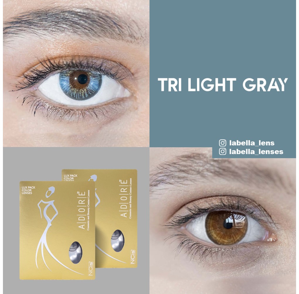 Adore Tri Tone Gri Renk Light Grey (3 Aylık) renkli lensler zarif çizgileri ile gözleriniz için doğal bir görünüm elde etmenize yardımcı olur. Yumuşak renkli lensler grubundadır. Adore Tri Tone Gri Renk Light Grey (3 Aylık) hareli ve haresiz olarak 2 alternatif ile sunulmaktadır. Lensler POLYHEMA ham maddesinden üretilmektedir.
