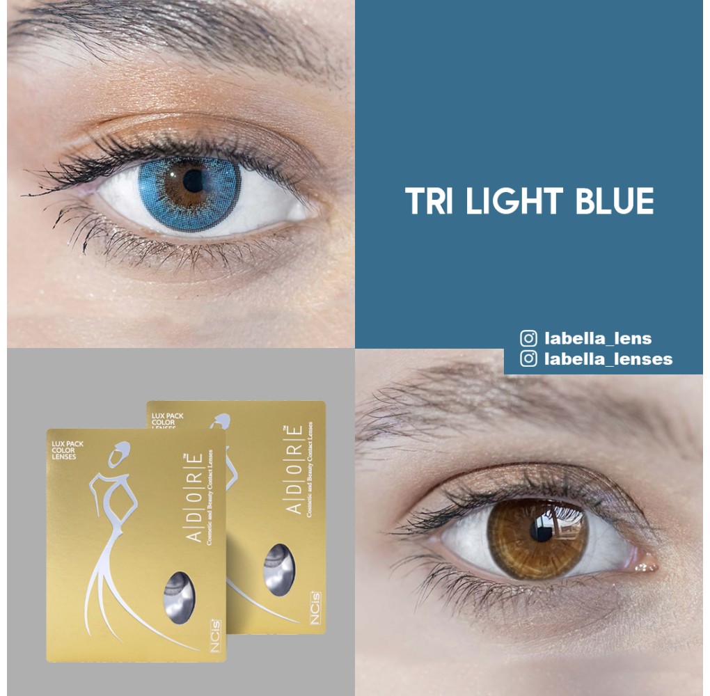 Adore Tri Tone Mavi Renk Renk Light Blue (3 Aylık) renkli lensler zarif çizgileri ile gözleriniz için doğal bir görünüm elde etmenize yardımcı olur. Yumuşak renkli lensler grubundadır. Adore Tri Tone Mavi Renk Renk Light Blue (3 Aylık) hareli ve haresiz olarak 2 alternatif ile sunulmaktadır. Lensler POLYHEMA ham maddesinden üretilmektedir.