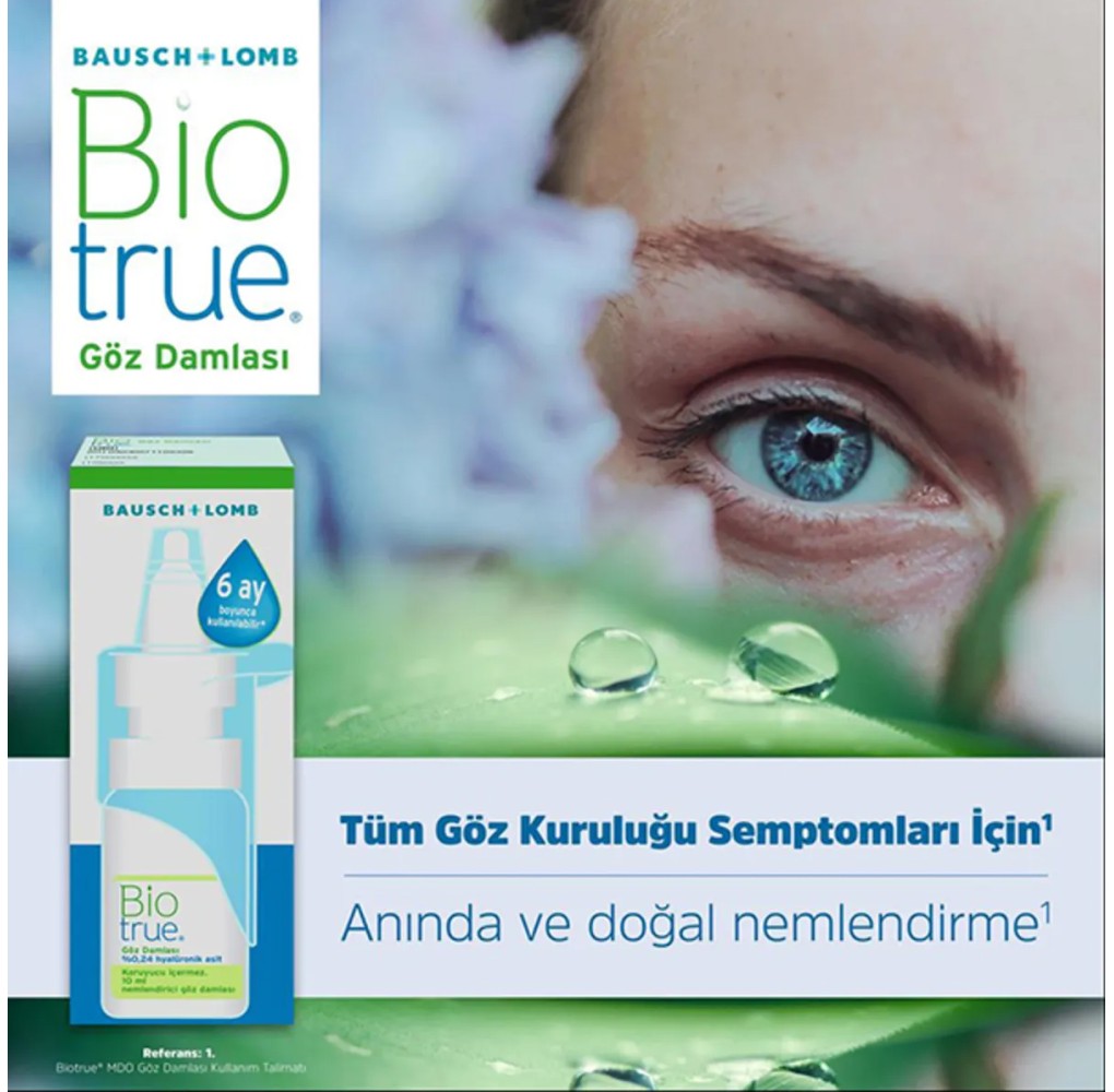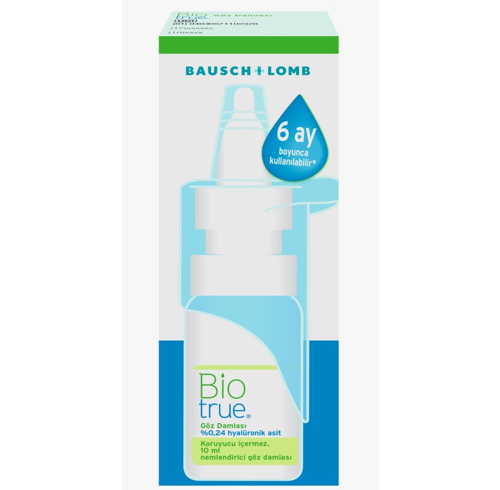 Bio True Göz Damlasi 10 Ml gözünüzü nemlendirerek anlık rahatlatma ve çevresel faktörlerden oluşlan göz kuruluğuna doğal çözüm üretmek için tasarlanmıştır. Biotrue® nemlendirici göz damlası %0.24 oranında hiyalüronik asit içerir. Göz kuruluğu semptonları için 6 ay süre ile kullanılabilir.