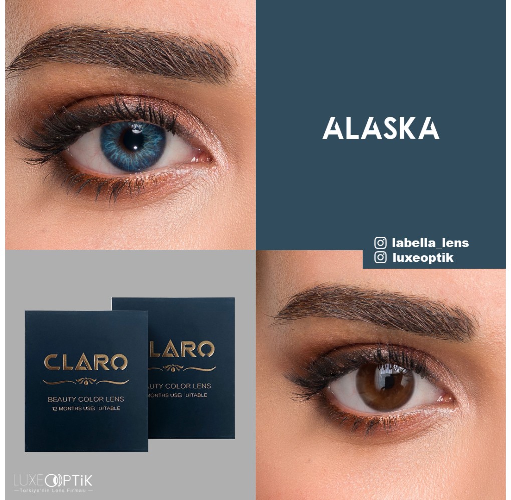 Claro Mavi Renk Alaska (1 Yıllık) Numaralı & Numarasız renkli lens zarif hatları sayesinde gözleriniz için doğal bir görünüm elde etmenizi sağlayacaktır. Yumuşak renkli lensler grubundadır. Dış çeperindeki çok ince detayları ile hare izlenimi verip içe doğru yavaş yavaş açılarak elayı andıran maviliği ile güzelliği sunacaktır.