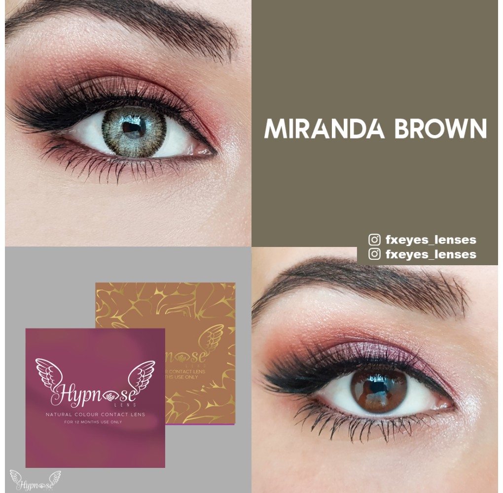 Hypnose Ela Renk Miranda Brown (1 Yıllık ) doğal tasarımları ve geniş renk yelpazesi ile kaliteli kullanım sunan renkli lens türleri arasında yer almaktadır. yalnızca göz rengini değiştiren klasik renkli lens değildir. Güzellik hissiyatı oluşturan bir lenstir. Numaralı ve numarasız olarak üretilmektedir. Farklı renk seçenekleri sayesinde doğallık hissiyatı da çok üst seviyelerdedir.