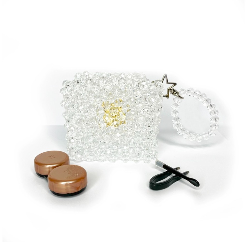 Kristal Tasarım Lens Çantası – Beyaz, klasik lens kutularından farklı olarak hem şık bir aksesuar görünümü sunar hem de lens kullanıcılarının günlük ihtiyaçlarını tek bir noktada toplar. Çanta içinde bulunan lens kabı, aparat ve cımbız sayesinde lens bakım rutininizi daha düzenli ve pratik hale getirir.