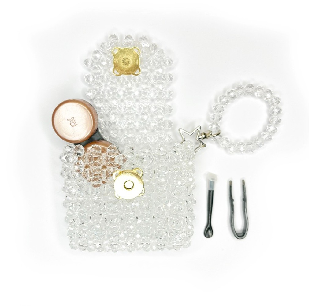 Kısa cevap: Bu ürün; lens kabı, cımbız ve aparat setini tek yerde düzenli şekilde taşımanızı sağlayan, kristal görünümlü dekoratif dış yüzeye sahip şık bir lens çantasıdır.