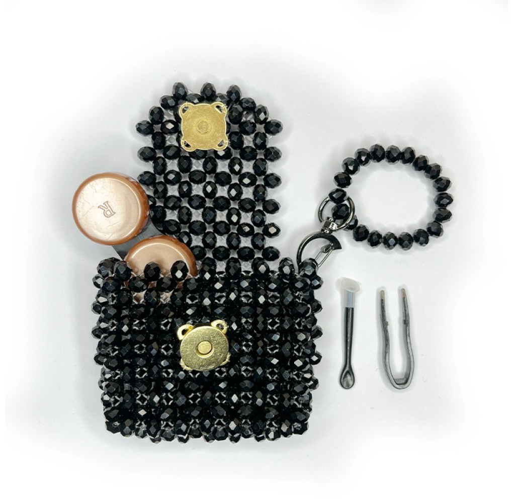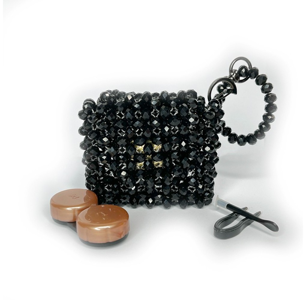 Kristal Tasarım Lens Çantası – Siyah, şık kristal dokulu yüzeyi ve zarif rengi sayesinde hem aksesuar hem de pratik bir lens saklama çözümü sunar. Lens kabı ve yardımcı aparatlar sayesinde lens takma ve çıkarma işlemleri daha düzenli ve hijyenik şekilde yapılabilir.