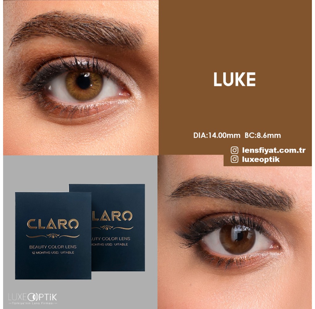 Claro Ela Renk Luke, kendine özgü ipeksi kakao tonu ile sizi günlük hayatınızda sıcaklık ve çekicilikle sarar. Haresiz yapısı sayesinde doğallığı ön planda tutar ve her anınıza zarafet katar. Su içeriği, göz sağlığınızı düşünerek tasarlanmış olup, 1 yıllık kullanım süresiyle uzun vadeli konfor sağlar.