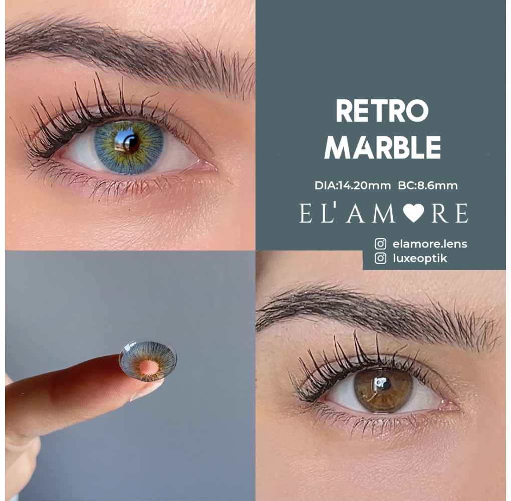 Lens tipi olarak renkli yumuşak kontakt lens olarak tanımlanmaktadır. 1 kutuda 2 adet olarak gönderilir. Su içeriği % 40 seviyelerindedir. BASE CURVE(BC) 8,6 DİA(MM) 14,20 olarak bilinir. Elamore Gri Renk Marble (6 Aylık) renkli lens grubunda olduğu için eşsiz bir renk ile sunulur.