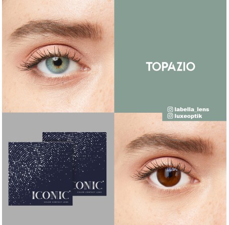 Bu lens, mavi ve su yeşili tonlara sahip olup renkli yumuşak kontakt lens kategorisinde yer alır. Iconic Topazio haresiz özelliği sayesinde lensler daha doğal ve gerçekçi bir görünüm sunar.