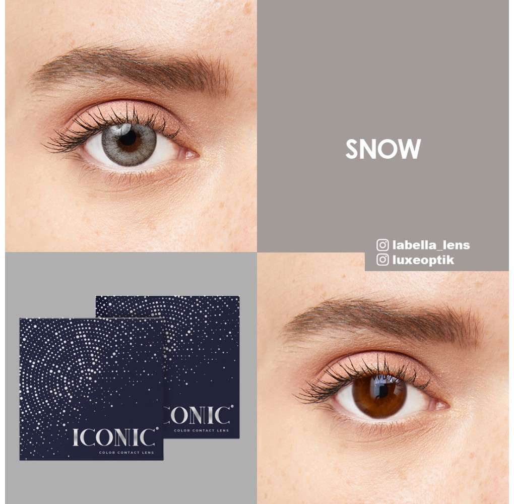 Iconic Snow lensleri, 14.20 mm (DIA) çapa ve 8.60 mm (BC) göz bombesi oranına sahiptir. Lensler, Polyhema adı verilen yumuşak silikon bazlı bir malzeme kullanılarak üretilir. Bu malzeme, lenslerin rahatça gözlerinize oturmasını ve gözlerinizin hava almasını sağlar. Bu, gözlerinizde kuruluk ve kızarıklık yapma olasılığını azaltır.