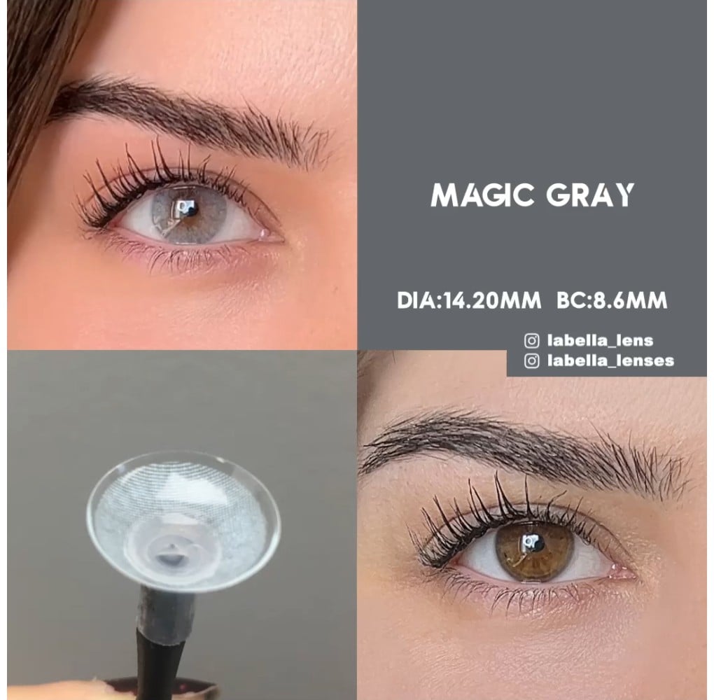 Labella Magic Gray (3 Aylık), mavi ve gri tonlarının dengeli birleşimi ile gözlere sofistike, modern ve doğal bir görünüm kazandıran özel seri renkli kontakt lens modelidir.