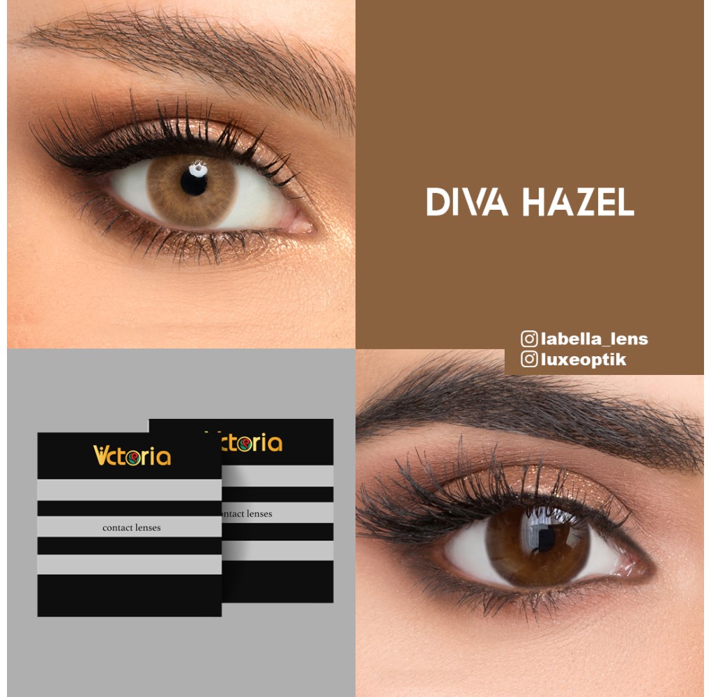 Victoria Diva Hazel Ela Renk (1 Yıllık) numaralı ve numarasız olarak tüm kullanıcılara hitap etmektedir. Modellerinde standart Çap(DIA) ve Temel Eğri(BC) lens ölçülerine sahip olarak üretilmektedir. 9 farklı renk seçeneği ile sizlere sunulmaktadır. Serinin ana özelliği standart ölçülerde üretilerek herkesime ve yeni başlayacak kişilere kolay kullanım sağlamaktır. Ve bu kolaylıkla beraber özel tasarlanmış renk seçeneklerini sizlere sunmasıdır. Seçtiğiniz model Dış çeperinde hafif ela tonlar ile doğal ince hare havası katarak, içe doğru sarıya yakın detaylarla ela rengi yansıtmaktadır